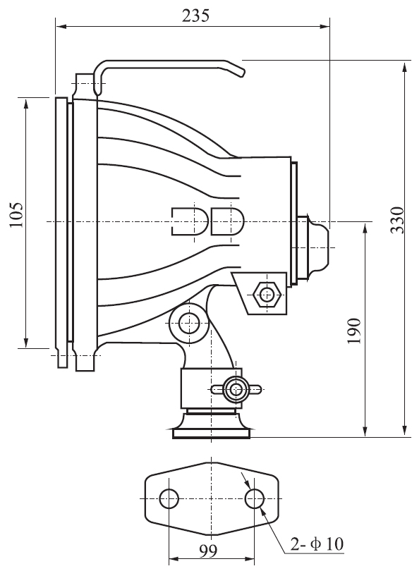 Applied to the partial illumination when searching,night navigation,lifesaving or water working for a middle-or small-ship.